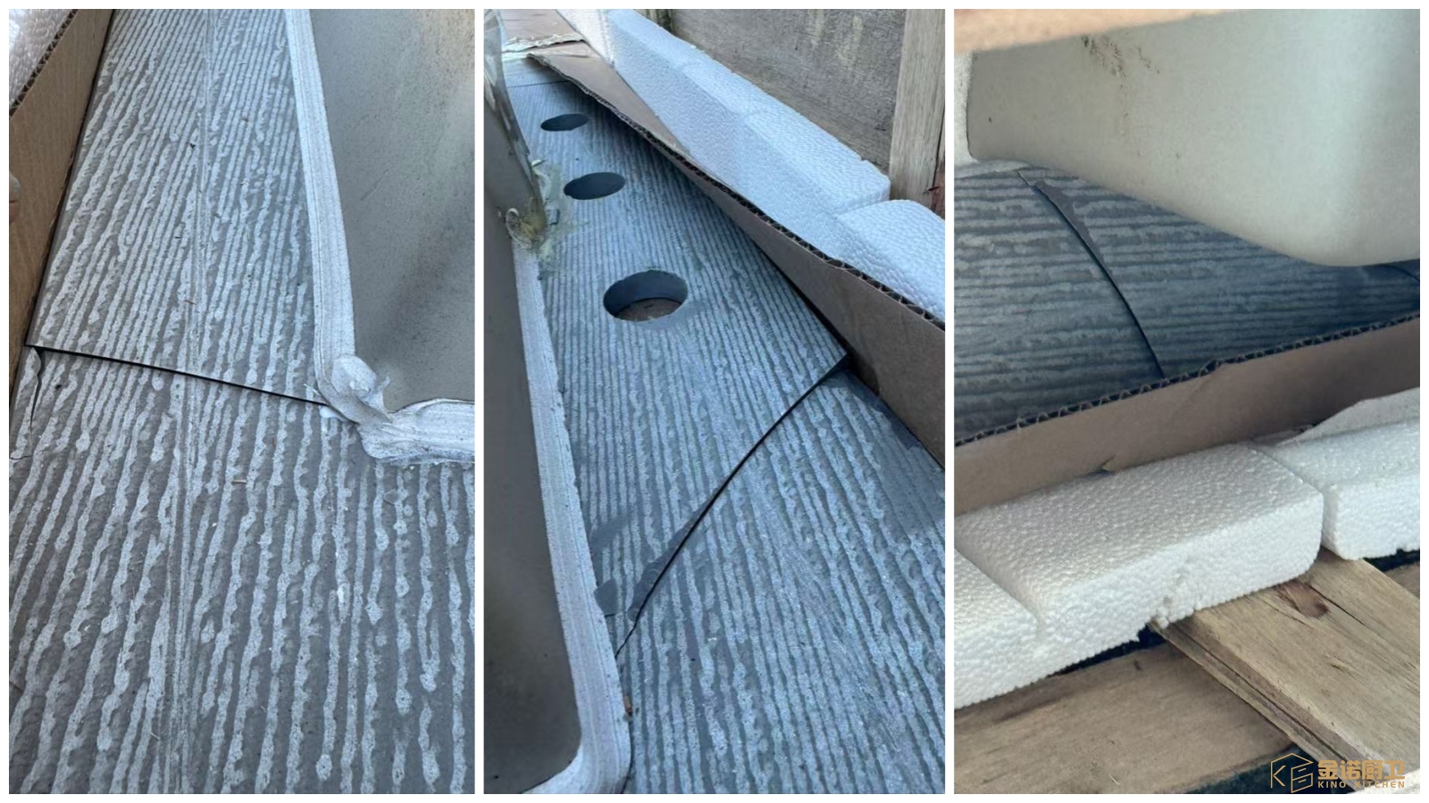 In an earlier project shipped to Australia, the kitchen products were manufactured to specification and passed internal quality inspection before leaving the factory. However, during long distance transportation, the shipment encountered severe handling stress.