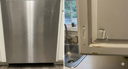 Wood cabinets rely on surface coatings and veneers. When these layers are damaged, the underlying material is exposed. Moisture penetration and structural degradation often follow.